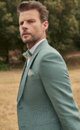 Elige un traje que combine formalidad y personalidad. Para bodas de verano, apuesta por tejidos transpirables como lana ligera o mezclas técnicas. Colores como azul claro, verde salvia, topo suave o piedra son perfectos para la temporada e intemporales. Ya sea con corbanda, pajarita o con cuello abierto, tu look de boda debe ser pensado – nunca recargado.