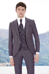 La couleur joue évidemment aussi un rôle majeur. Les tons clairs ne sont pas seulement esthétiques, ils reflètent la lumière du soleil et donnent une impression de fraîcheur naturelle. Des teintes comme le sable, le gris colombe, le bleu clair ou le lavande sont sophistiquées et bien adaptées au cadre. Un exemple parfait est notre costume bleu ciel doux, idéal pour les célébrations en journée ou les cérémonies en bord de mer. Une autre option audacieuse mais raffinée est notre costume prune associé à un gilet paisley. Bien qu’il s’agisse d’un ton plus sombre, il offre un équilibre remarquable entre personnalité et élégance, conçu pour le marié qui souhaite se démarquer avec grâce.